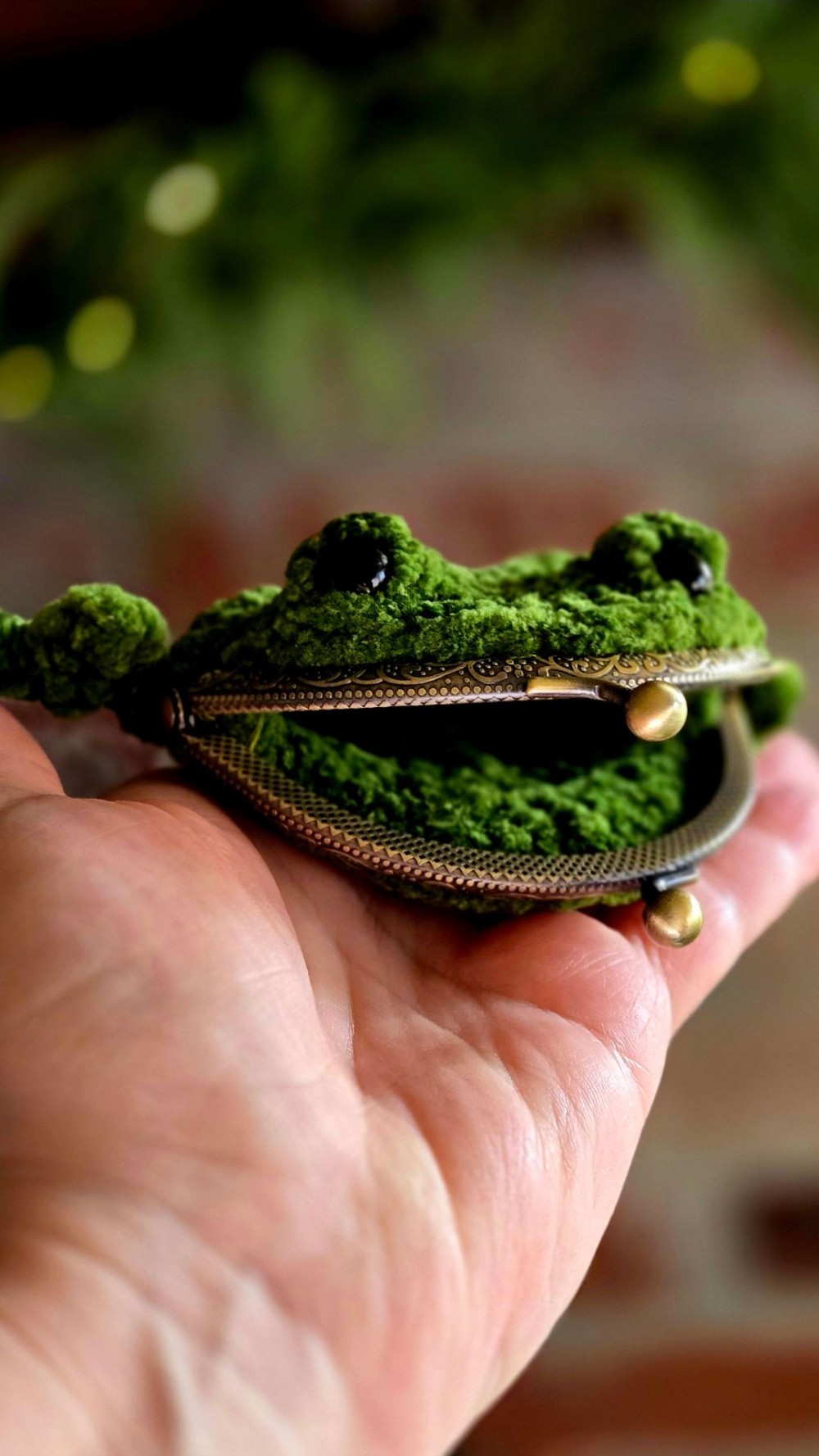 The structured metal clasp frame provides secure storage for coins, cash, earbuds, lip balm, or small essentials. Soft yet structured, this frog wallet blends whimsical design with everyday functionality, making it a unique gift, boutique accessory, or cottagecore statement piece.