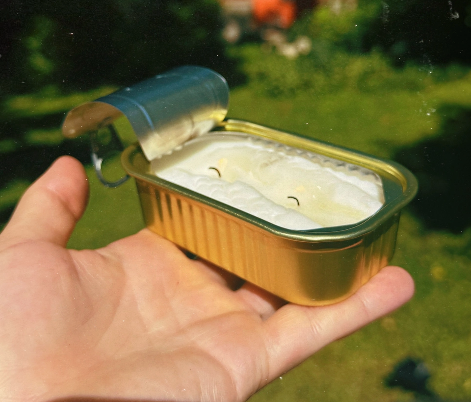 Infused with the refreshing scent of citronella, it effectively keeps pesky bugs at bay while creating a pleasant ambiance. Packaged in a charming tinned fish container, it adds a whimsical touch to any setting, indoors or out.
