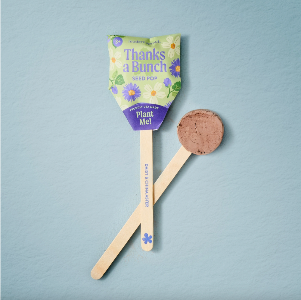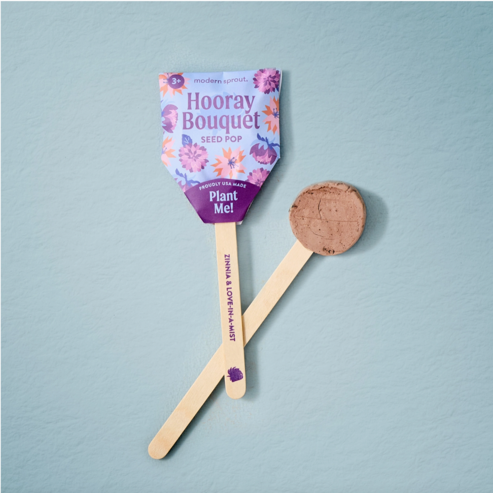 Our newest Seed Pops pair celebratory messaging with vibrant flowers for life’s special gifting moments. Pops feature seeds embedded in a nutrient-rich clay mixture and are designed to be planted in the ground or a pot. Just unwrap, plant and grow! Once planted, the wooden stick serves as a garden marker.