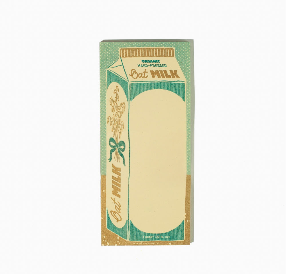 Oat milk is for the lactose-intolerant and those looking for plant-based alternatives to dairy. Risograph printed in metallic gold and teal on cream paper.