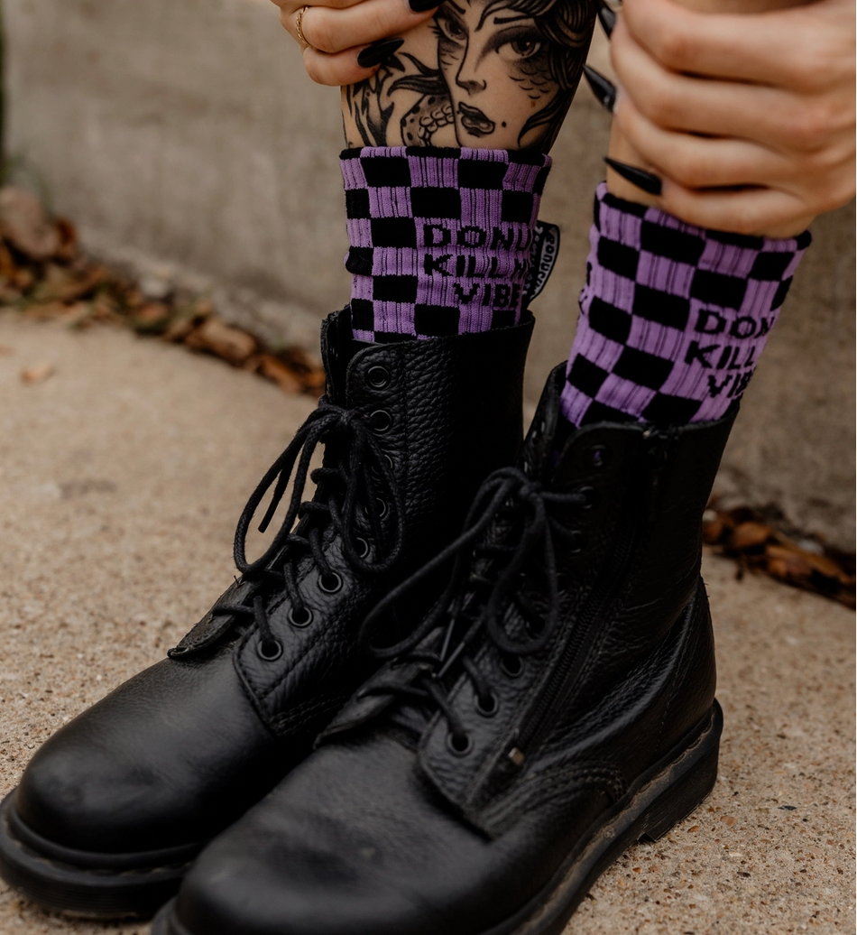 “DONUT KILL MY VIBE" on Both Sides of Sock
